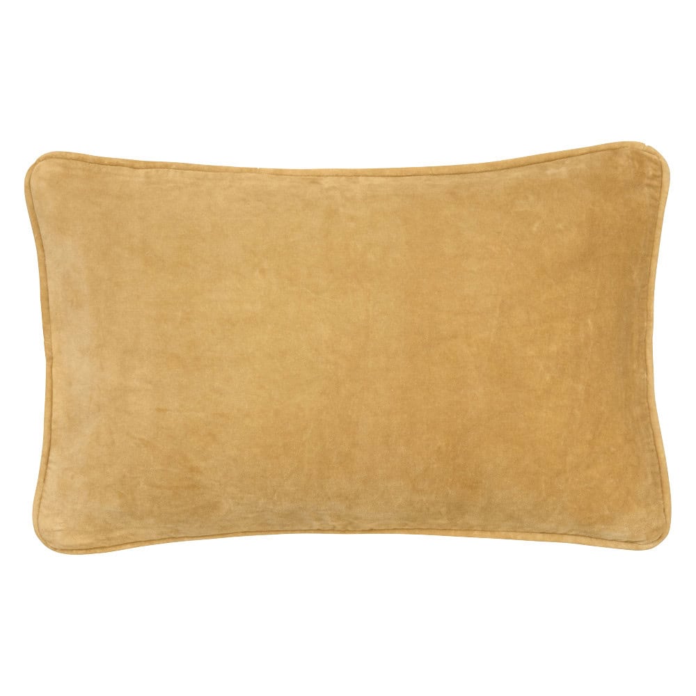 Voeg zachtheid en luxe toe aan je interieur met dit gele velvet kussen. Het fluwelen (of velours) kussen is gemaakt van 100% katoen, en is hierdoor helemaal natuurlijk. Het kussen is heerlijk zacht en aaibaar, en heeft door het fijne materiaal een prachtige warme en luxueuze uitstraling. Dit gele kussen heeft bovendien een leuk extra detail: de sluiting in de zijkant is voorzien van mooie parelmoeren knoopjes. Het kussen is langwerpig en de maat is 50 cm lang bij 35 cm breed. Een lief maatje dus, en een echte blikvanger op je bank.