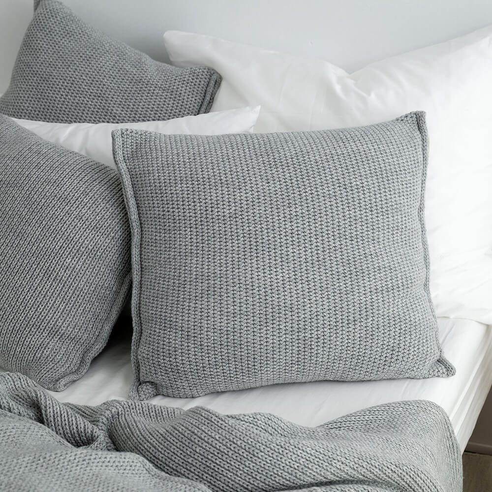 Het grijs van dit gebreide kussen laat zich het beste omschrijven als een lichte tot middengrijze tint. Grijs is een fijne, neutrale kleur die echt overal prachtig bij staat. In een kleurrijk interieur zorgt een groot gebreid kussen in grijs van wolmix ervoor dat de felle kleuren geaccentueerd worden. Heb je veel beige, zand of wit in huis? Dan hou je het ingetogen geheel met grijze kussens. Het kussen laat zich ook goed met de seizoenen mee stylen. Denk bijvoorbeeld aan lichte pasteltinten in de lente, okergeel of turquoise in de zomer, oranje- en bruintinten in de herfst, en rijke, edelsteenachtige kleuren zoals bordeaux en petrol in de winter. Dit geweldige kussen leent zich overal voor!