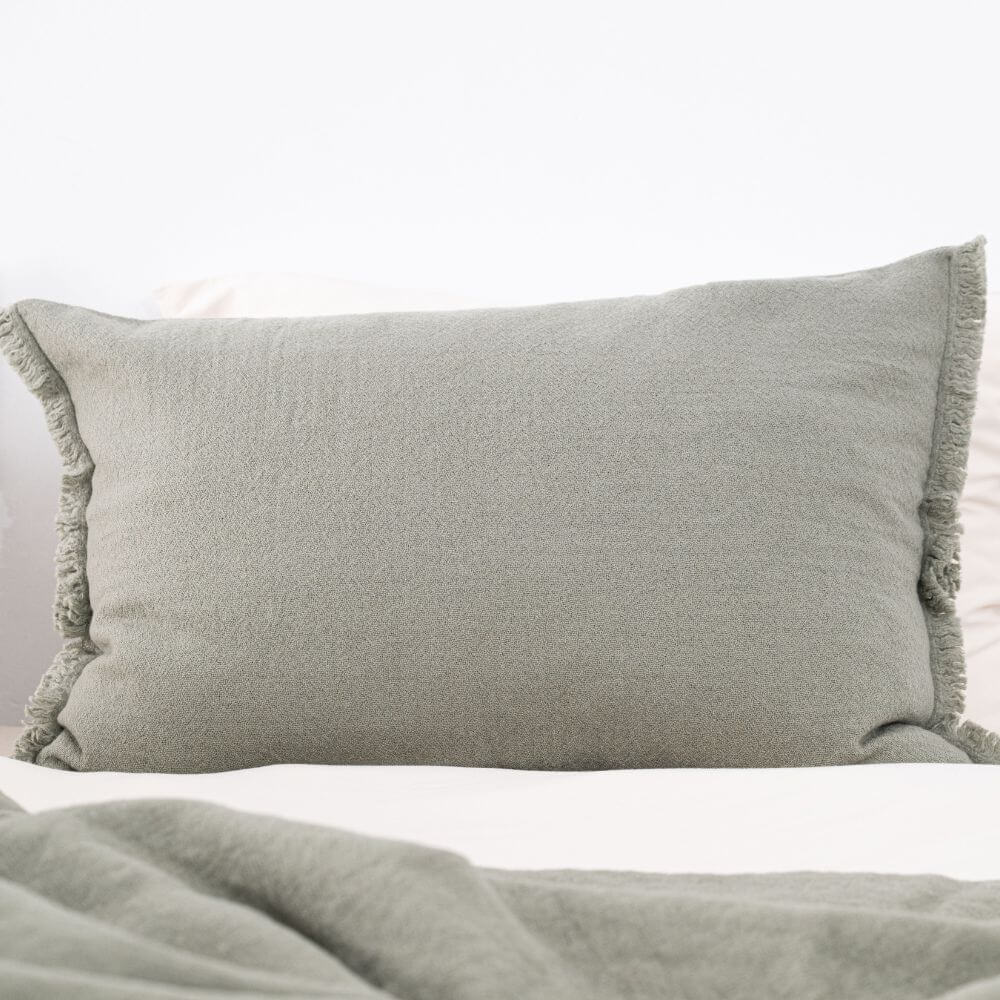 Dit extra grote langwerpige sierkussen in olijfgroen is van het merk Moyha. Dit Poolse merk is opgericht door twee dames die alles zelf ontwerpen en de productie in eigen beheer houden. Moyha staat bekend om het gebruik van warme, natuurlijke tinten en de zachte, luxe uitstraling van de producten.