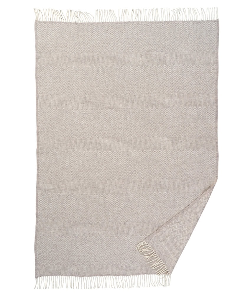 Met deze eco-lamswollen plaid in beige voeg je een echte blikvanger toe aan je interieur. De plaid heeft ingeweven zigzag of chevron patroon. Doordat de beige kleur is geweven met wolwit, heeft de plaid een zachte uitstraling. De plaid is verder voorzien van franjes in dezelfde wolwitte kleur. De combinatie van het speelse patroon en de franjes geeft ‘m een unieke look die het goed doet in verschillende interieurstijlen. Deze eco-lamswollen plaid in beige is geweven van 100% ecologisch geproduceerde lamswol en is hierdoor extra duurzaam. Echt een plaid waar je een leven lang onder kunt ontspannen.