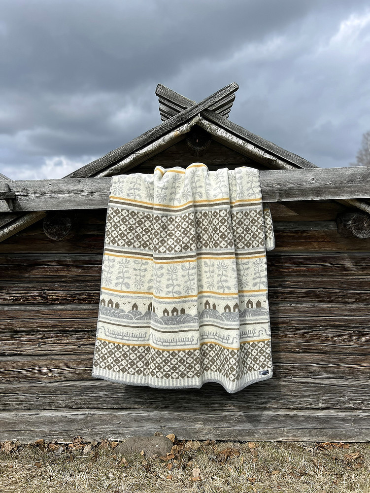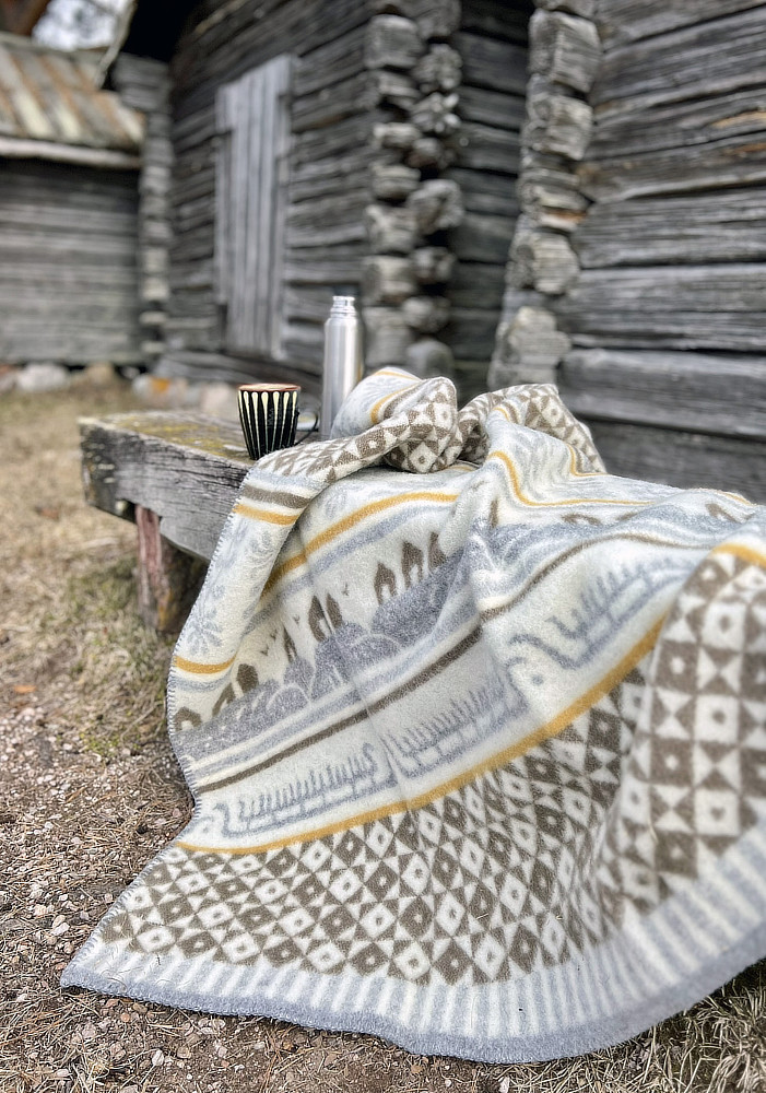 Met deze prachtige plaid in okergeel, bruin en grijs van lamswol haal je een unieke woondeken in huis, want de gave print steelt de show in je woonkamer! Dit mooie ontwerp is gemaakt door de Zweedse ontwerpster Kerstin Landström. Voor het patroon heeft Kerstin zich laten inspireren door rotsen, boothuisjes, de gebreide truien die de vissers dragen, kamperfoelie en de rotstekeningen die te vinden zijn in Tanumshede. Het resultaat is echt een plaatje, wat je direct doet wegdromen naar de Zweedse kust. Wij vinden het ‘hygge’!