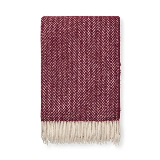Deze bordeauxrode wollen plaid is van het Deense merk Elvang. Elvang staat voor vakmanschap en duurzaamheid, en dat zie je in elk detail terug.