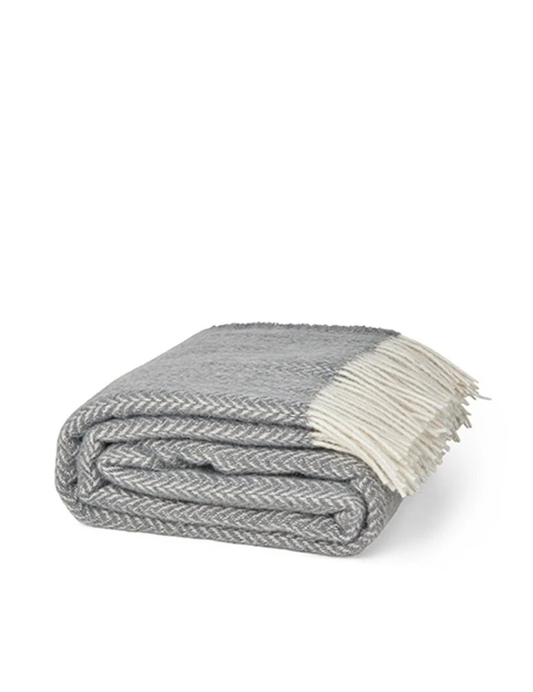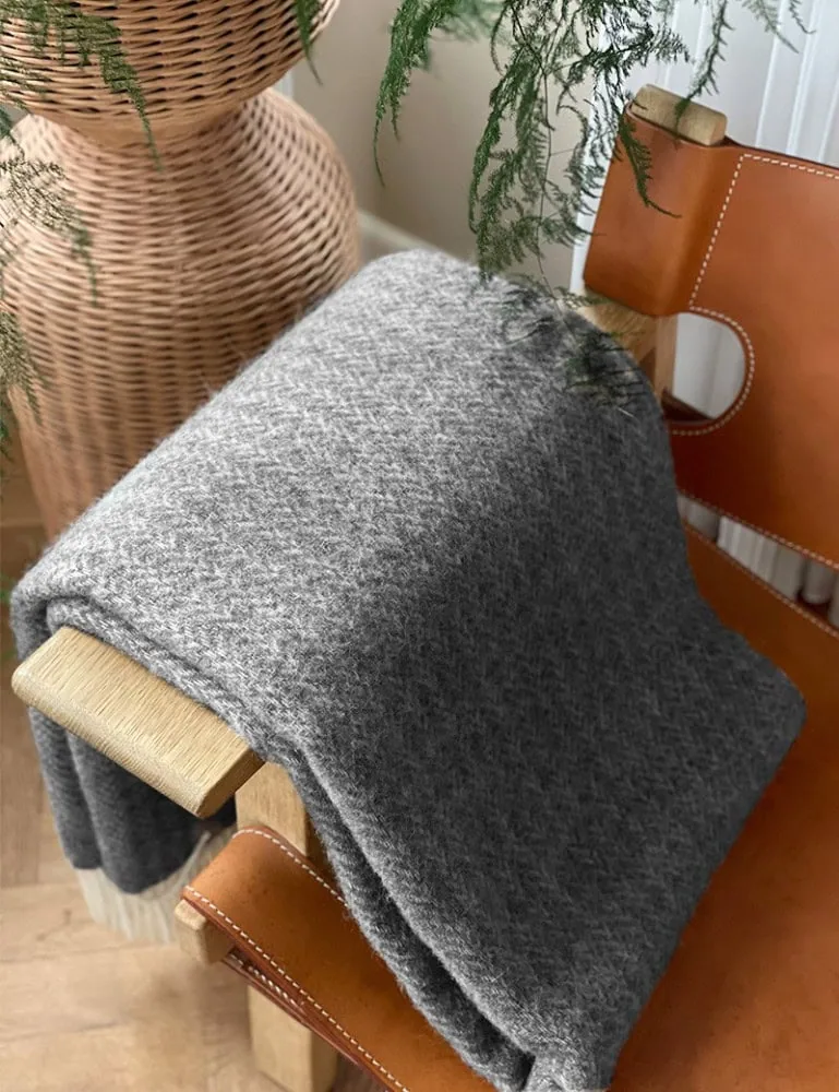 Deze grijze wollen plaid is van het Deense merk Elvang. Elvang staat voor vakmanschap en duurzaamheid, en dat zie je in elk detail terug.