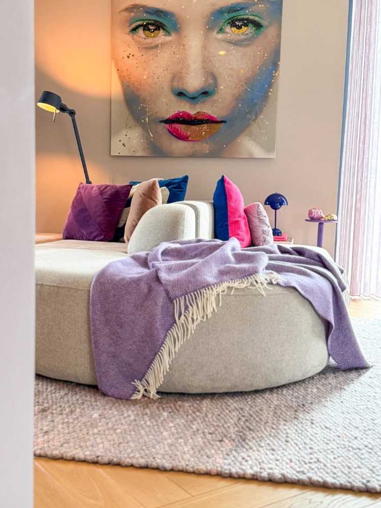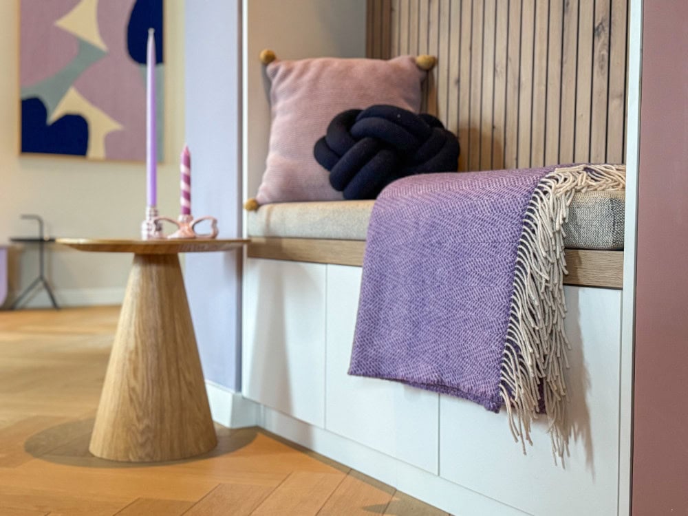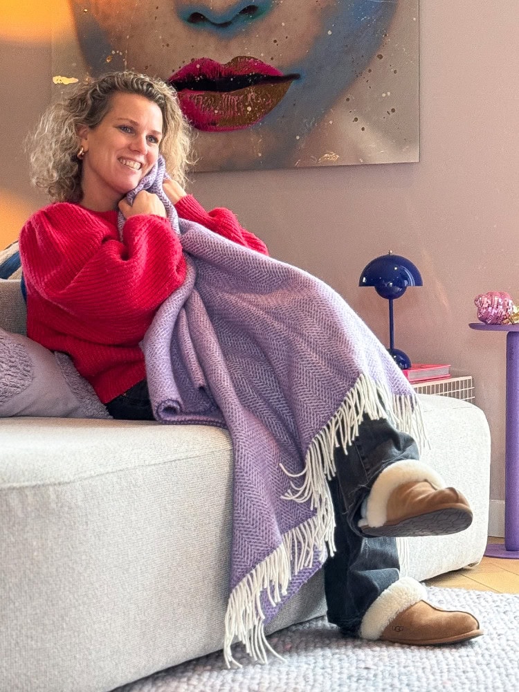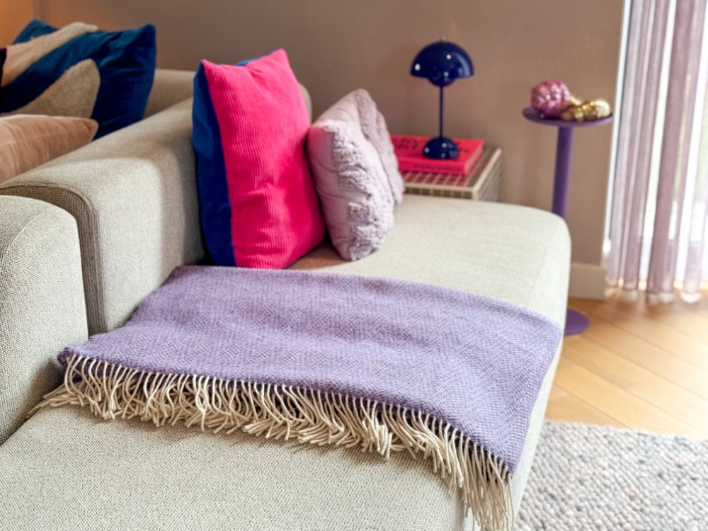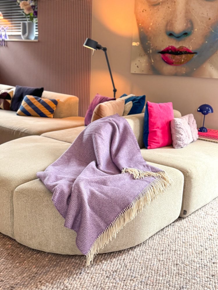 Lila is een geweldige woonkleur: het is een zachte paarse kleur die goed staat in verschillende interieurstijlen. Zo geef je met deze plaid in lila van cashmere en merinowol een gaaf contrast aan een stoer, industrieel interieur! Maar je kunt ‘m ook goed kwijt in een boho-geïnspireerde woonkamer. Ben je juist meer van het minimalisme? Ook dan hoef je je met deze mooie lila woondeken geen zorgen te maken. Hij combineert geweldig met neutrale kleuren zoals beige, taupe en bruin en voegt warmte en kleur toe zonder dat ie het ingetogen geheel verstoort.