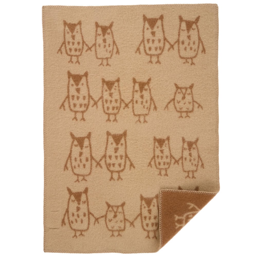 Deze wiegdeken in taupe van Klippan is een fijne mix van zachtheid, warmte en stijl. Het lieve patroon van de uiltjes die elkaars handje vasthouden maakt dit dekentje perfect voor de babykamer. De deken is geweven van 100% lamswol: stevig, ademend en behaaglijk warm. Door het omkeerbare ontwerp kun je steeds een andere sfeer creëren, want aan de ene kant is hij taupe met de uiltjes in een donkerdere taupe kleur, en de andere precies andersom. De festonsteek langs de randen geeft de wiegdeken een charmante afwerking.